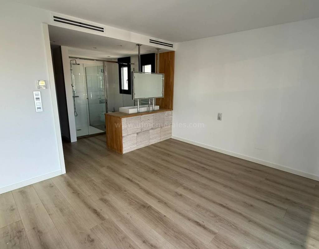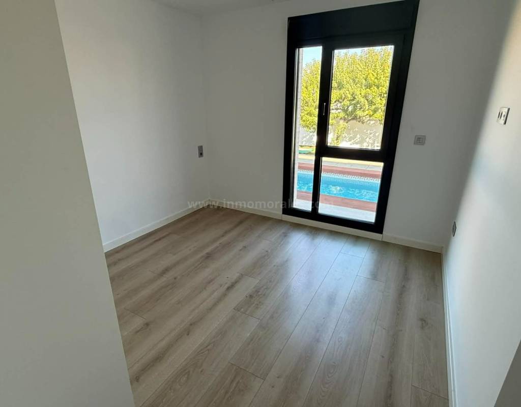 Elle offre une surface totale de 200 m² répartis sur 3 étages, avec un terrain de 500 m². . Vous entrez dans la maison par une terrasse surélevée et accédez ainsi au salon spacieux et lumineux avec un éclairage d'ambiance. Vous trouverez ensuite une cuisine moderne entièrement équipée qui peut être fermée par une porte vitrée. À cet étage, il y a également deux chambres avec placards intégrés, une salle de bains avec jacuzzi et un débarras/buanderie. Au premier étage, vous trouverez une petite pièce, idéale pour un bureau ou un coin détente, et la chambre principale, avec salle de bains attenante et dressing. Les deux chambres ont accès à une terrasse offrant une vue magnifique sur les environs et les montagnes.